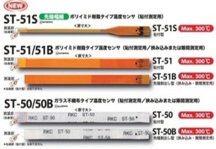 理化工业测温线ST-50,它是一种热电偶温度传感器,可以很容易地黏贴在待测物体上。 也有另一款尖端宽度为2.3毫米的ST-51S,这是测量小点温度的理想选择。 通过黏贴或夹在要测量的位置来测量温度,加上传感器本身的热容量非常小, 因此可以瞬间测量温度,成为数据采集的理想选择。 也可以直接用作温度指示器或记录仪,作为普通K热电偶温度传感器。